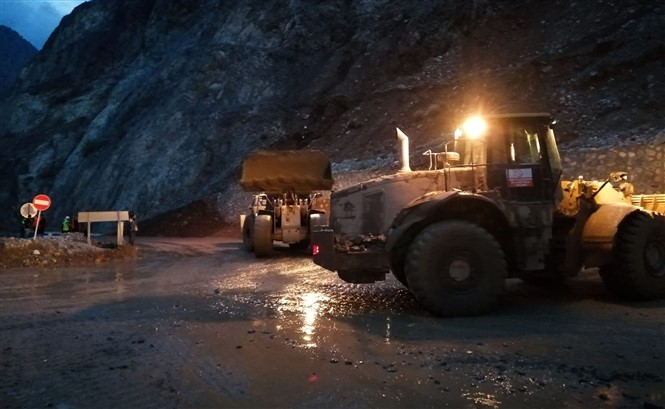 Artvin-Erzurum karayolu, iki farklı noktada meydana gelen heyelan nedeniyle ulaşıma kapandı.Karayolları ekipleri ile bölgede baraj inşaatı ve yol yapım çalışmalarında faaliyet gösteren iş makinelerinin yardımıyla yolun trafiğe açılması sürüyor.